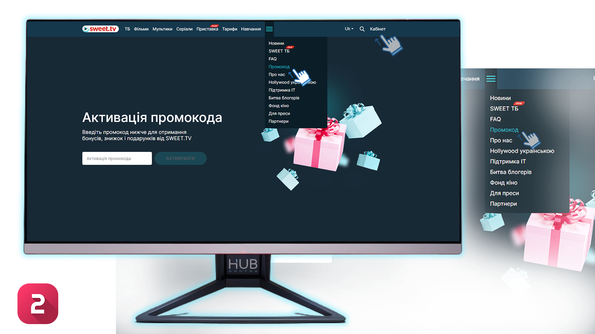 Наприклад, за допомогою сервісу "Безкоштовні промокоди" від GTX HUB - ви з цим кодом можете активувати 1 місяц перегляду Sweet.tv.