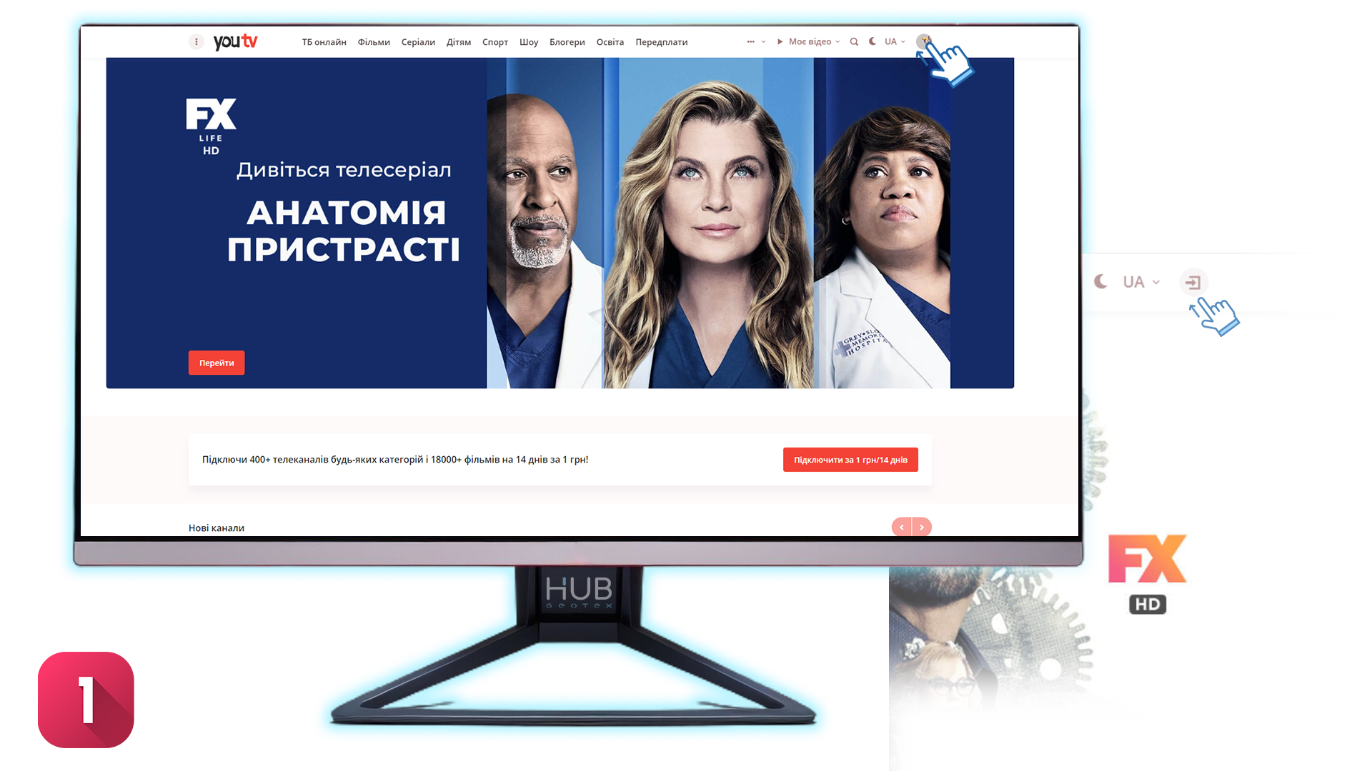 Перейдіть на сайт YouTV, увійдіть до власного кабінету та/або пройдіть процедуру реєстрації.